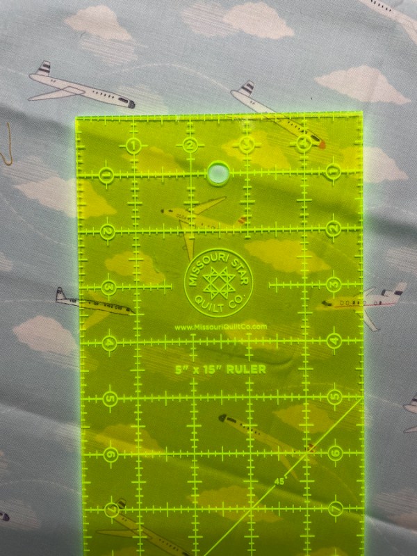 I have a whole post on rulers, written when I was teaching, if you want an overview. But this week, I pulled this one out and really found it great for cutting 2 1/2″ blocks and 1 1/2″ snowball blocks. It’s a pretty slimmed down ruler, and sometimes that makes it a lot easier.