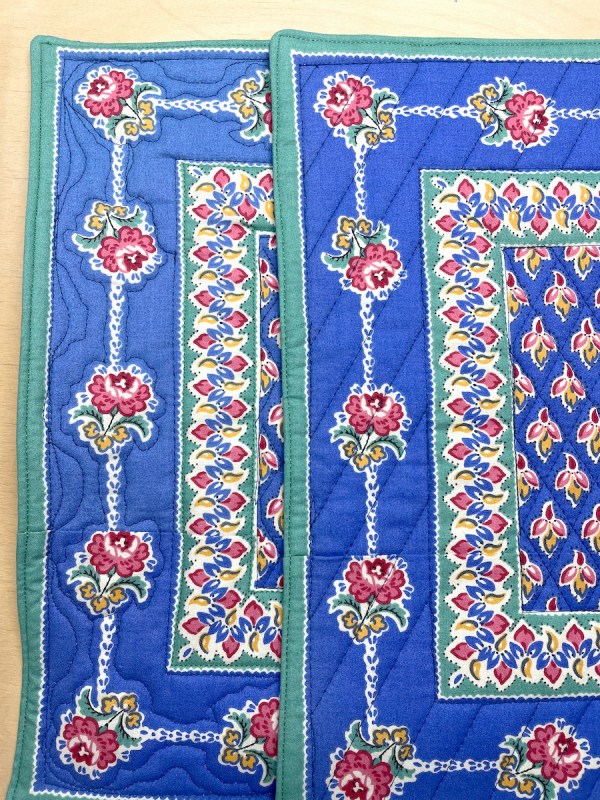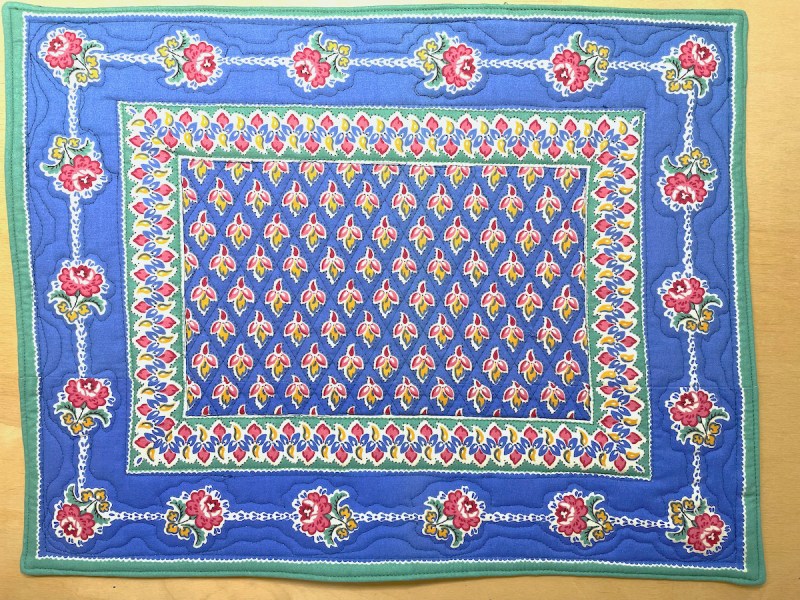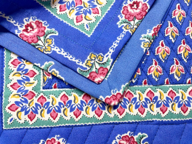 I remember those French prints. Provence-type fabrics, aren’t they? As I recall, because I used to have some, the fabric can be coarse. It’s interesting how the colors faded, but I think that adds to the character of the placemats and napkins. After a few uses and washes, you won’t be able to tell which is which. Enjoy using them.