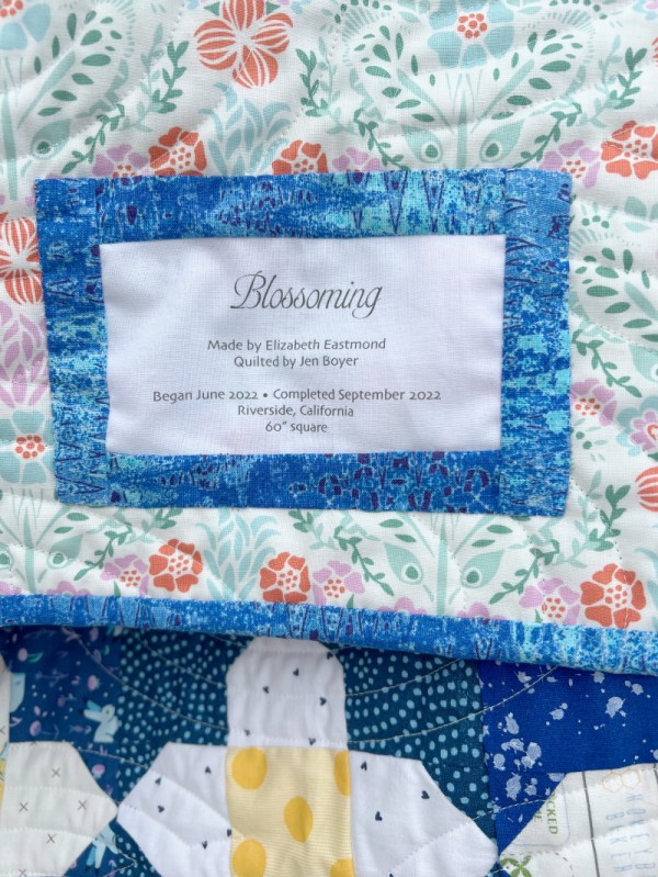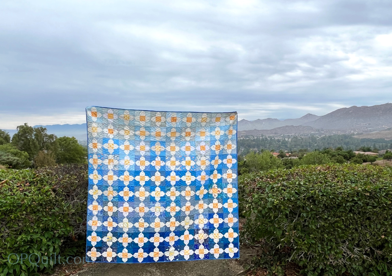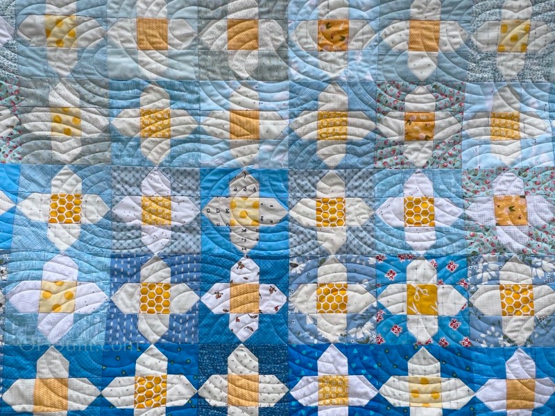 3. It is indeed a calm quilt. The gradient effect of the blue fabric and the spots of yellow are just delightful! I hope it brings that feeling of calmness to you Elizabeth. Thinking of you on this significant day.