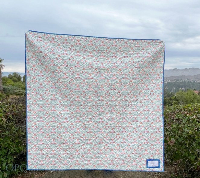 I got this back from the quilter, cut the binding, and in the last gloriously awful days of our heat wave, I sewed on the binding while listening to Hamnet, a novel I highly recommend. Finally(!) we get a view of Shakespeare’s wife from a woman, and I was fascinated with the things I learned about running a household in the 1600s.