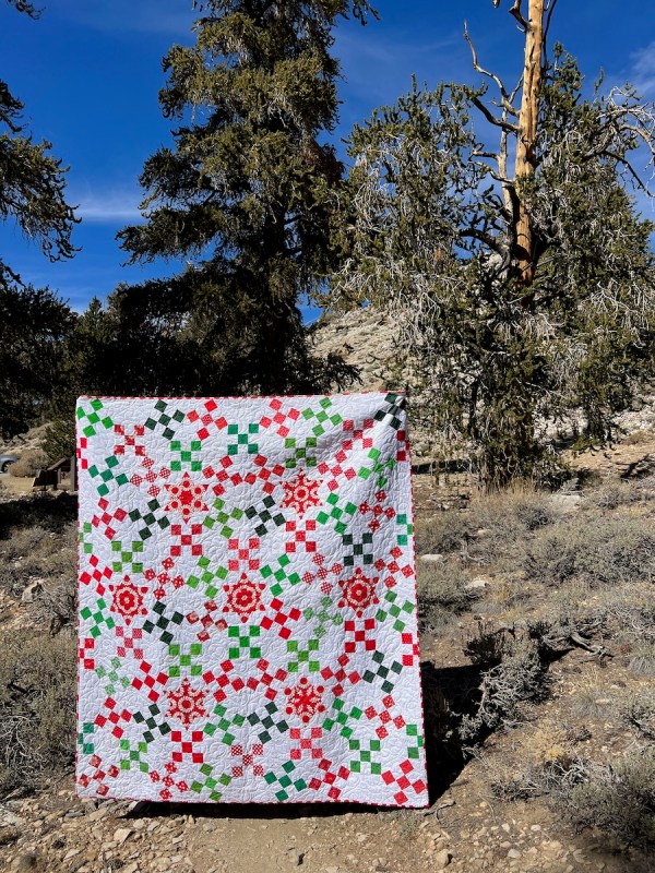 I love those secondary circles that are formed in Jingle Bells, and thank you for all the insight that you have learned about the evolution of this block throughout the years. I’m sorry you felt dumped on and I’m so glad to hear that taking the quilt out to the Bristlecone pines lifted that weight and make the quilt a keeper for you.