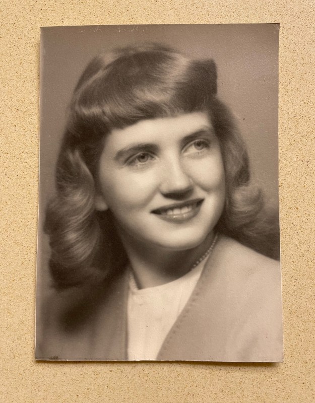I found this photo of my mother while I was hunting for something else. As most of you know, she passed away mid-November [obituary], and yes, my brain is sort of strange right now. This photo was in a grouping of three of my mother and her two siblings: