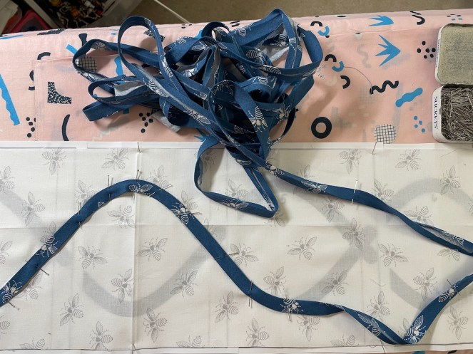 Love your new quilt: the bees, the pattern, and that border. Is this what you made the red bias for originally? You’ve really given me a good idea. Thank you again.