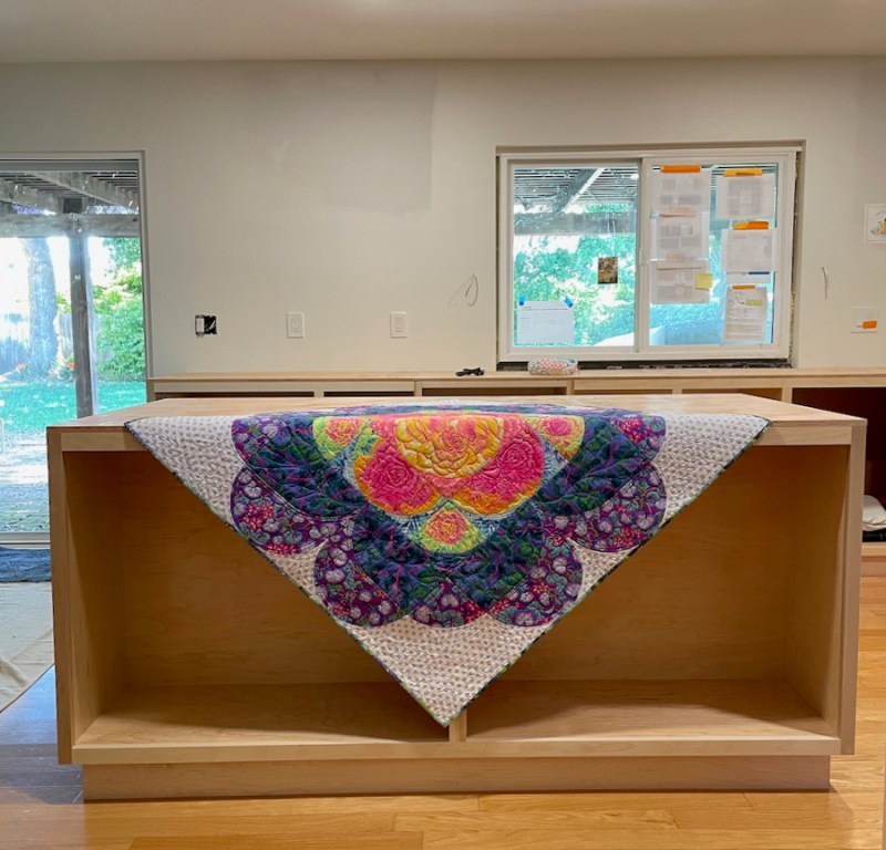 Lovely and vibrant quilt. We will look forward to your profound and deep thoughts another time when you aren’t immersed in a kitchen renovation!