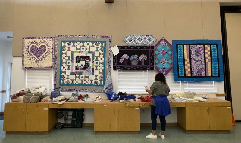 That’s Susan there, and that charming sewing-machine quilt (proper hyphen usage: linking together two or more adjectives that can’t stand alone) is hers too. When I was feeling stronger after last winter’s events, I volunteered to help with our Guild website. Which turned into their FB (bad, b/c I hate FB), which turned into setting up a new website, helping my friend Char write a set of Bylaws (8 pages) and Standing Rules (16 pages), and take photos when the photographer doesn’t show, and notes when the secretary can’t. Yes, my simple little stream volunteerism has turned into a torrent, but those of you who are involved with Guilds know how this goes.