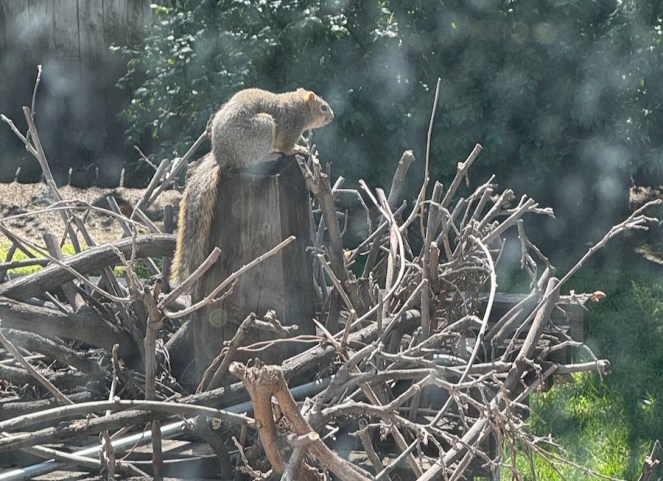 We had our wisteria trimmed; the squirrel’s perch is right outside my sewing room window.