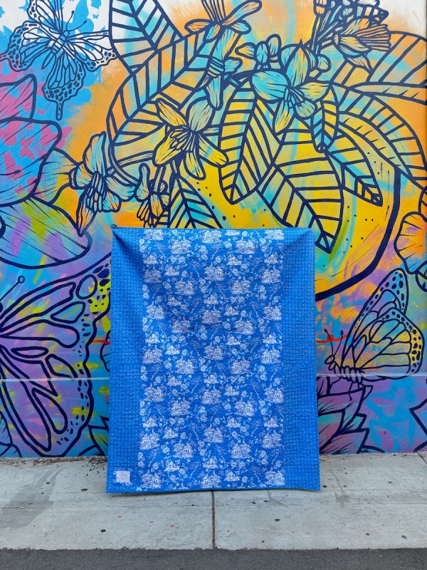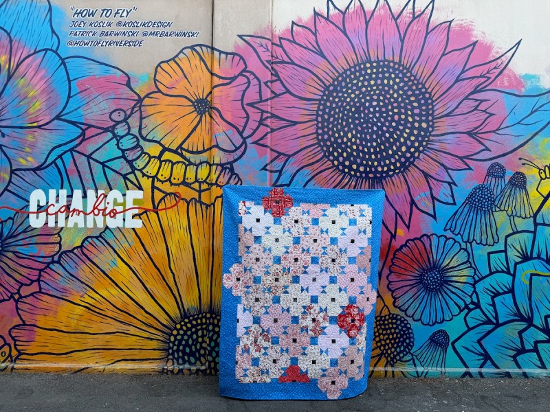 So as my husband (chief Quilt Holder) and I took the quilt down to be photographed at what we call the Butterfly Alley, we repeated a few rituals: get the quilt-holding sticks with the clamps, determine if the light is right, find a parking place and watch people’s faces as we unfurl a hand-made quilt in an urban setting, wait for the wind to die down, and take the photos (with lots of “up on the left — the other left!”).