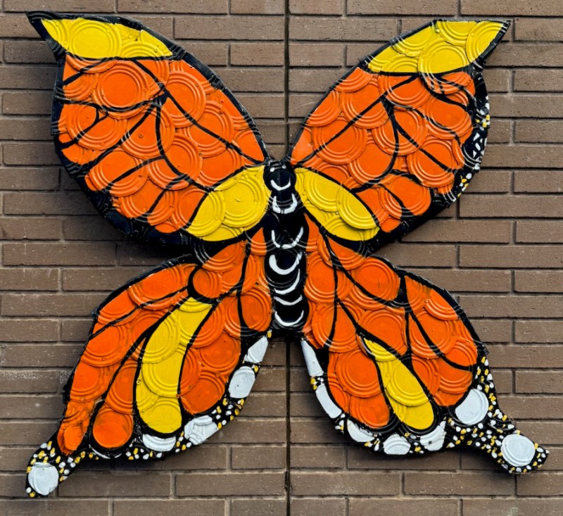 A Butterfly Alley butterfly, made from scraps of tin cans from a local restaurant.