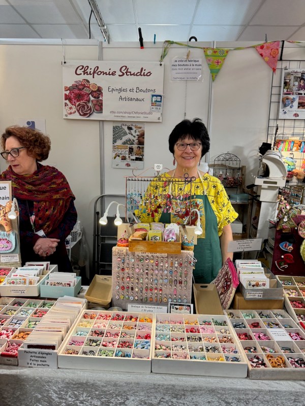 Chifonie Studio‘s booth was filled with wonderful bits of polymer clay, for rings and charms, and she had a whole section of jewelry (yes, I bought some — it fits in the suitcase really well). [I’ve linked her ETSY shops.] And then I saw: