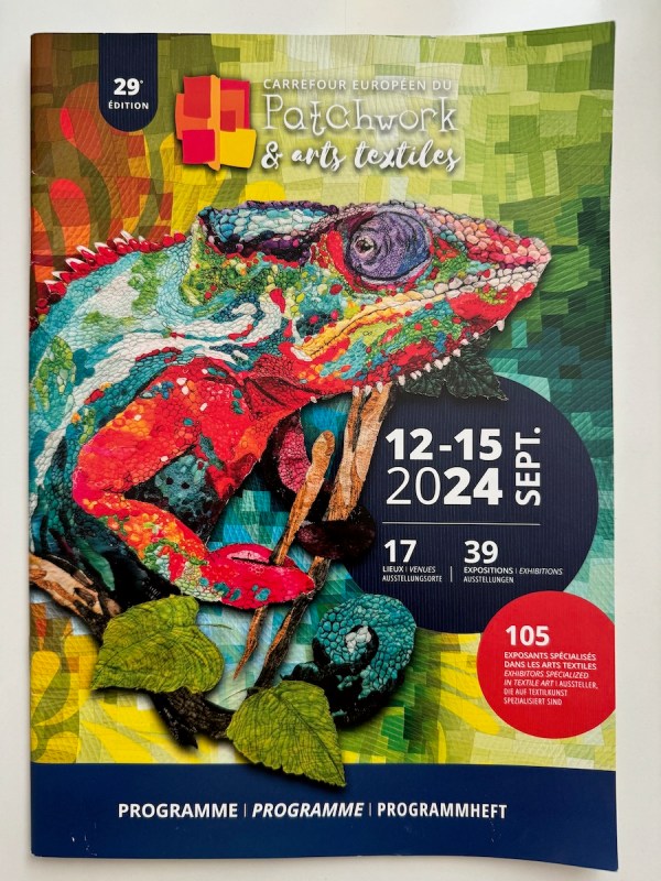 The Carrefour European Patchwork Meeting was held September 12-15, 2024, in a series of small villages in the Alsace region of France, and ever since my husband Dave and I had decided to take a trip to France this year, visiting this quilt show was on the docket. We’d come before and I so enjoyed it, that we planned again to visit. Carrefour means crossroads in French, and this area, where France, Switzerland and Germany meet is a perfect place for quilters to gather. Not only were there many European quilters, but a couple of quilters from the USA that I know also had representation, due to the Modern Quilt Guild’s traveling show (shout-out to Yvonne Fuchs and Ginny Robinson), which I’ll get to in a subsequent post.