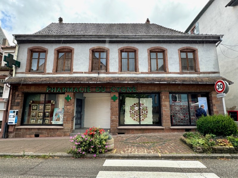 Many places were decorated, some with traditional items (geese and swans are big around here), and some with quilts (Pharmacy of the Swan):