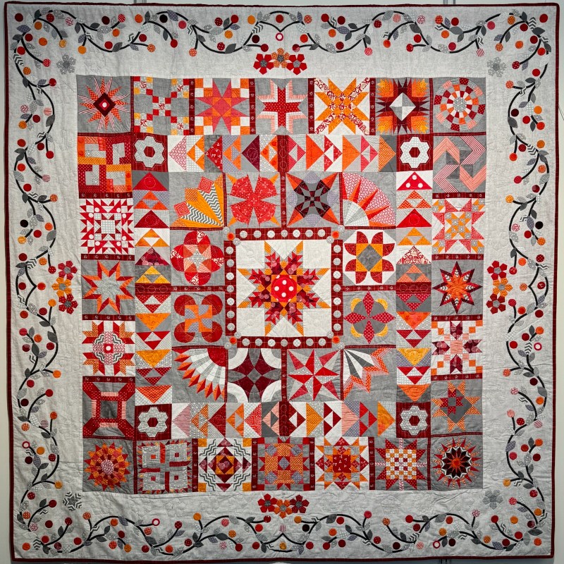 As usual, I really enjoyed your post. Seeing all your beautiful work always makes me happy. That Cosy Winter quilt from your quilt show trip is fabulous, but then I am a big sampler quilt fan.