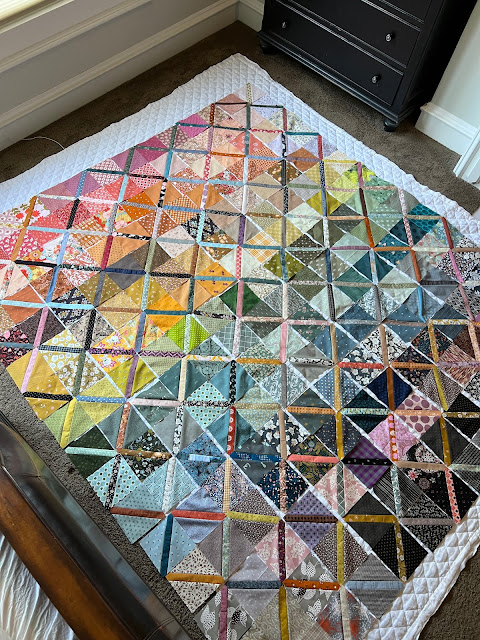 Have I sewn anything? I participated in a bee, and just about half the blocks were unusable. So with my fever-covid-fog (FCF) brain, I unpicked some that were too small and re-sewed them, I was happy I purchased more fabric than I needed, so I could make-from-scratch a handful more. One quilter had eye surgery and I was happy to make hers for her. I was sent some blocks half-finished, and finished them. Some blocks were a couple of weeks late, which gave me angst because of my FCF-brain: I’d grabbed a slot with my quilter so I could have this back for the holidays, and time was slipping away. I decided, in the end, that maybe I’d picked too complicated of a block for some of the quilters, or maybe it was just a bad-karma month for a lot of other people. That happens. But in end, as with most quilts, Mercato Square was finished. I sent it off, after agonizing about which quilting panto to use. Stay tuned.
