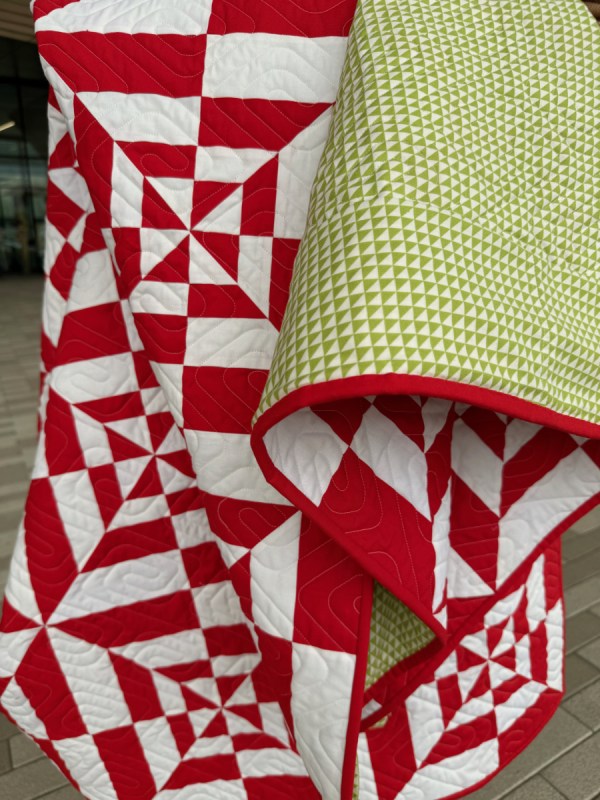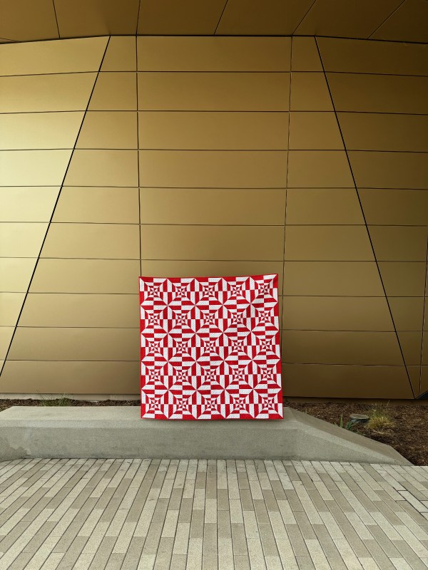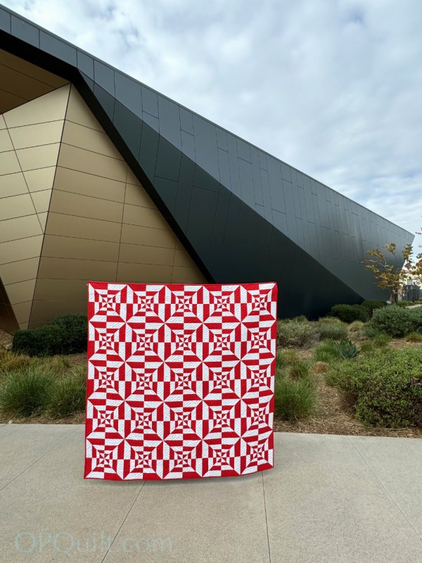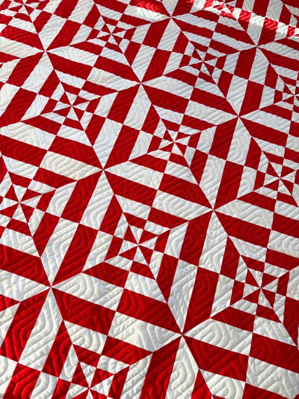 7. Red and white quilts are always so striking and you add the wonderful modern design and this quilt just sings joyously! Thanks go out to your husband also for his quilt holding capabilities to allow you to share such beautiful pictures with us all.