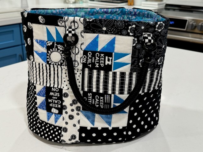 I did use a lot of “how to sew Japanese bags” searches on the internet, with questions like “Do I trace the pattern off the pattern sheet in the back of the book?” (yes) and “Are seam allowances included?” (no). This required a huge MIND shift, and aside from sewing the bottom to the top edge of the bag, I made it. (That’s why it looks upside down, ahem.) I did a lot of improvising, but I also love it, too.
