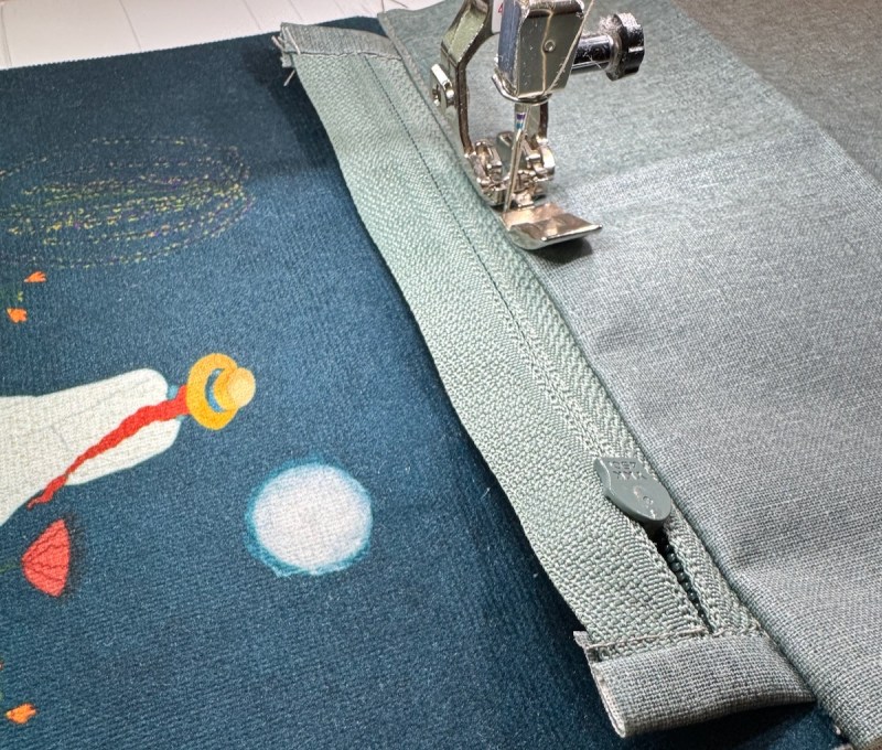 Ends go on the zipper, zipper gets sewn to the fabric…a usual sequence of steps for a pouch.