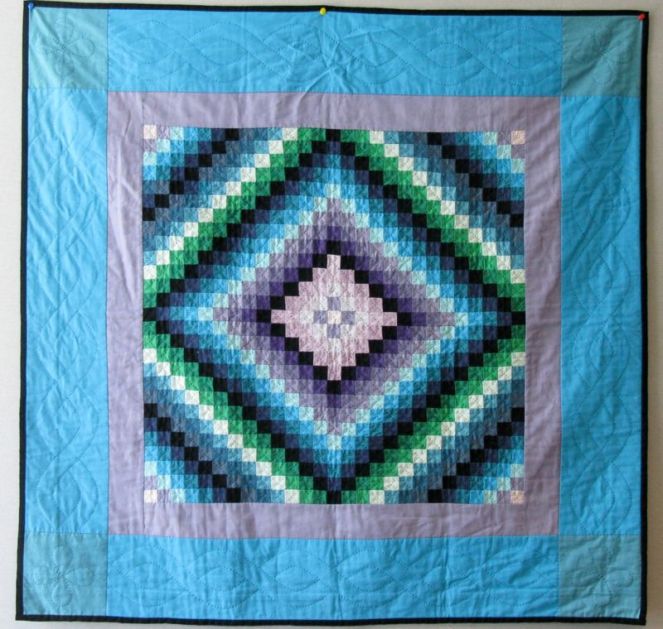 Like this one, from the Early Years. My son Chad now has this Sunshine and Shadow quiltsomewhere, he says — but even if it’s lost in his attic, I still have photos. Machine-pieced, hand quilted with a layer of flannel inside…not batting.