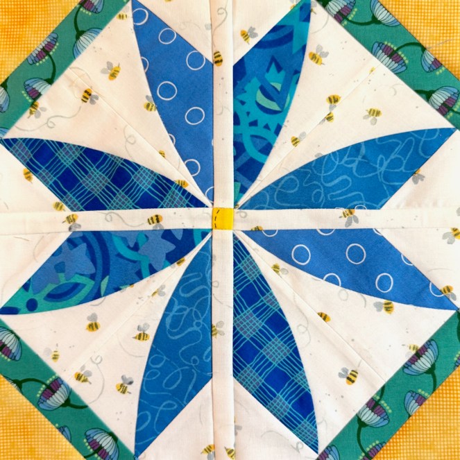 2. Oh wow, maybe you could see into the future; the pansy prints are lovely and a good reminder of your trip. I think the spool block is a great substitute for the friendship star. And hooray for cool nights/mornings. It’s best to savor all the sweetness we can these days.