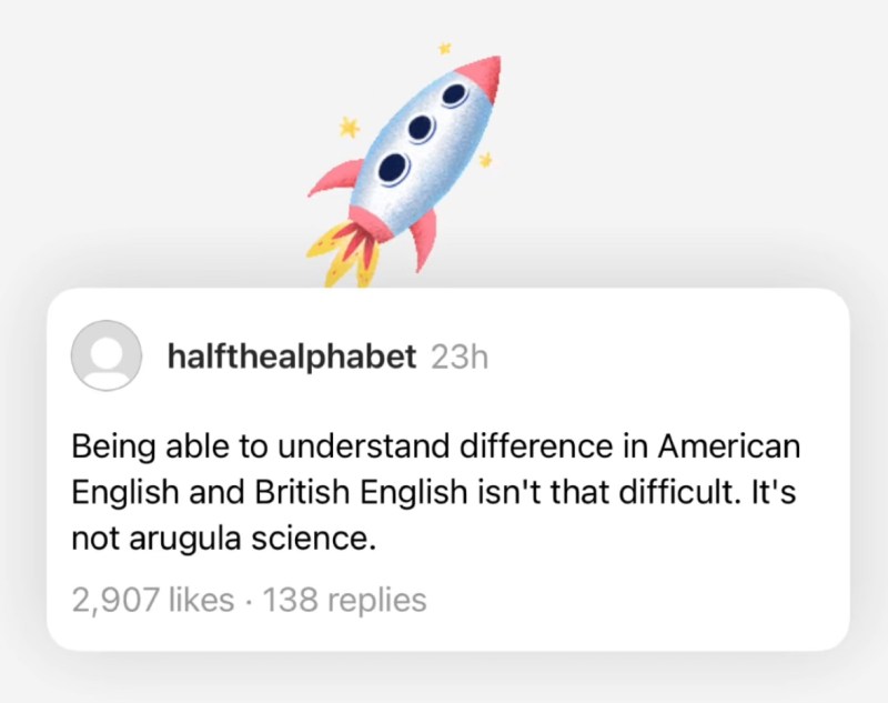 Anywhere you travel in Europe, they call arugula “rocket” for some reason. Here’s a little joke for you from the internet.