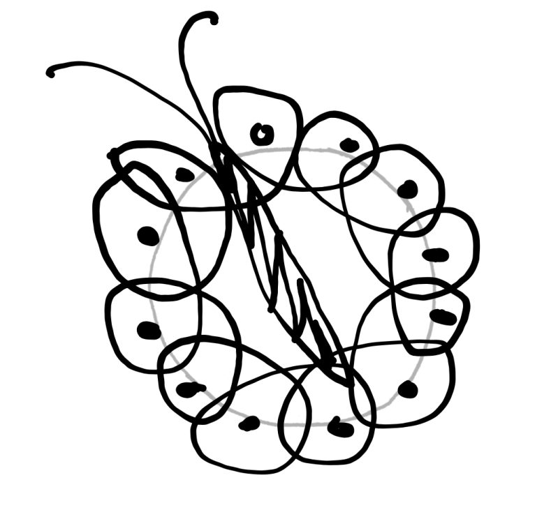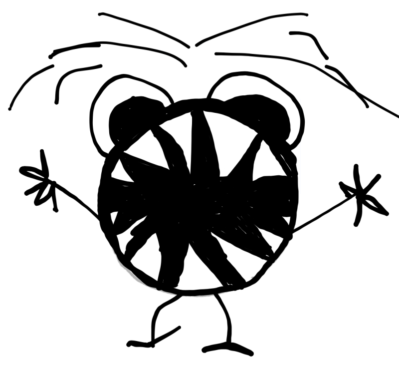 We had to begin with a circle and go from there. I’m do not consider myself a hand-drawing-artist, so I did the best I could with a screen and a mouse. Don’t know where that second drawing came from–maybe from the state of politics in our nation today (doesn’t it make you crazy, too?).