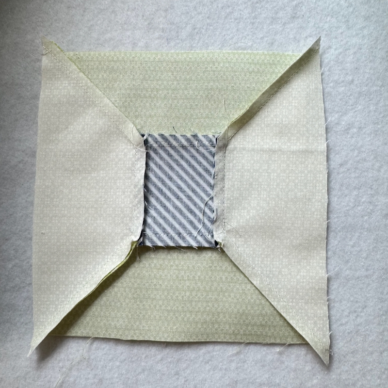 And here’s the back of it. It’s fast: sew the sides on, sewing only between the dots. Then sew from the dots to the corners.