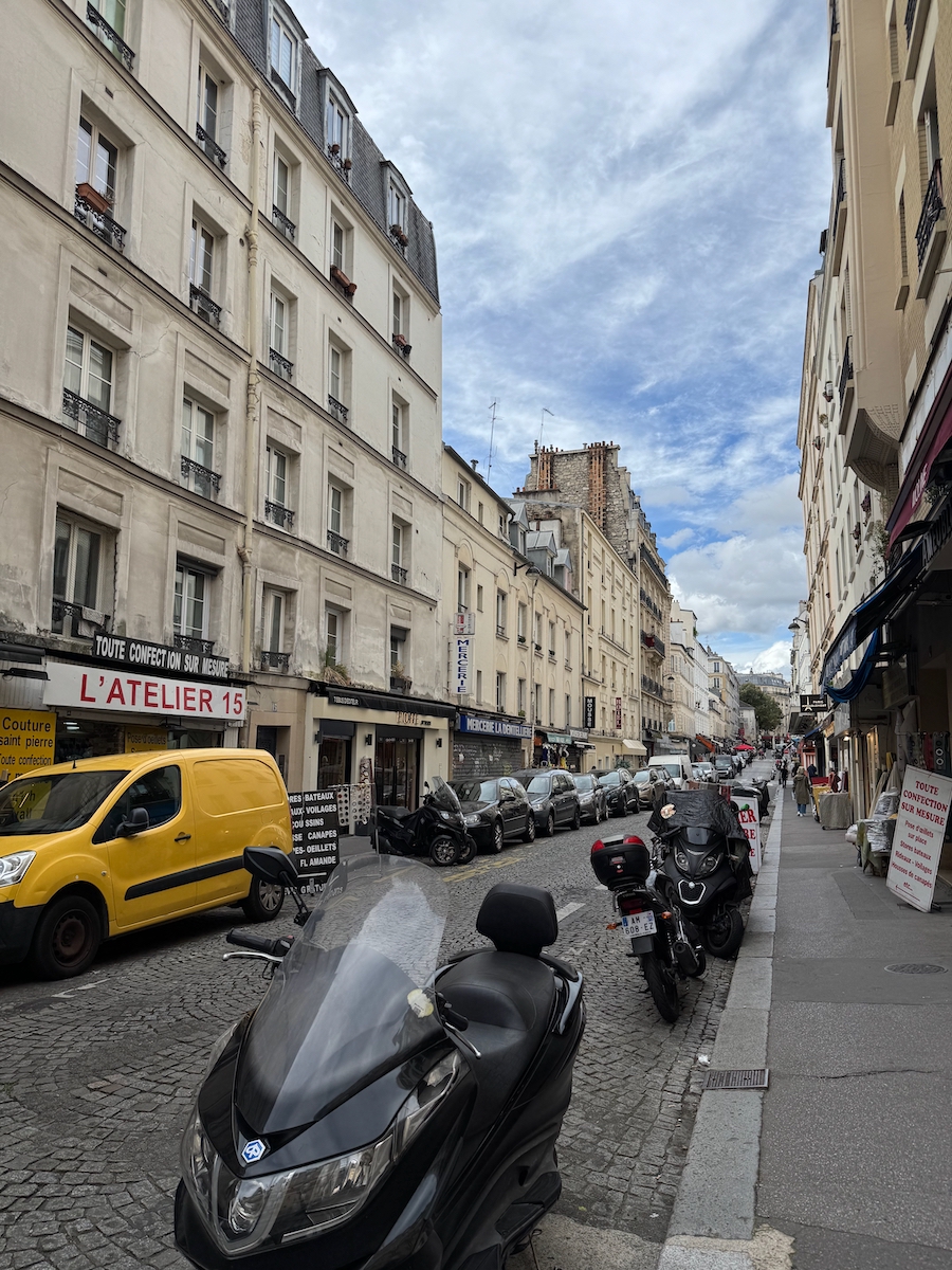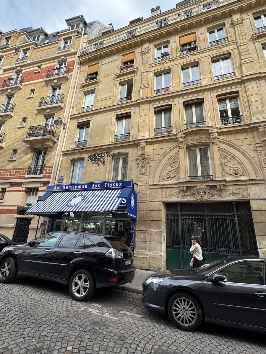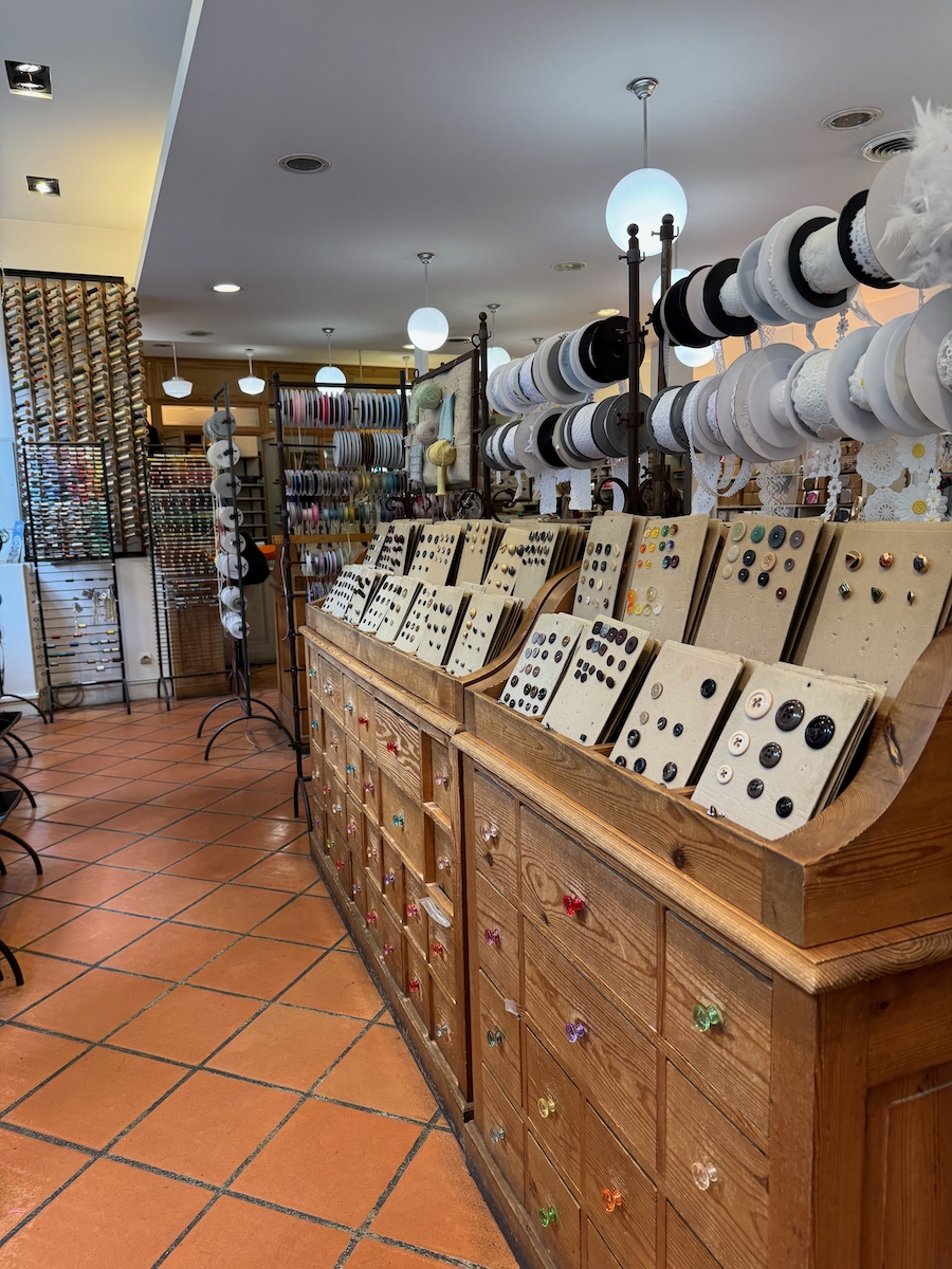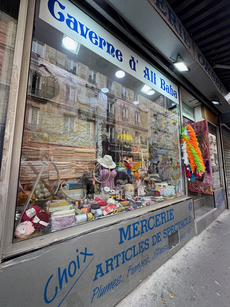 We rode the metro up to near Montmartre then got off and walked up through streets. I’d typed in “mercerie” into my map program (I mostly used Apple Maps, but my husband used Google Maps and between us we usually made it somewhere).