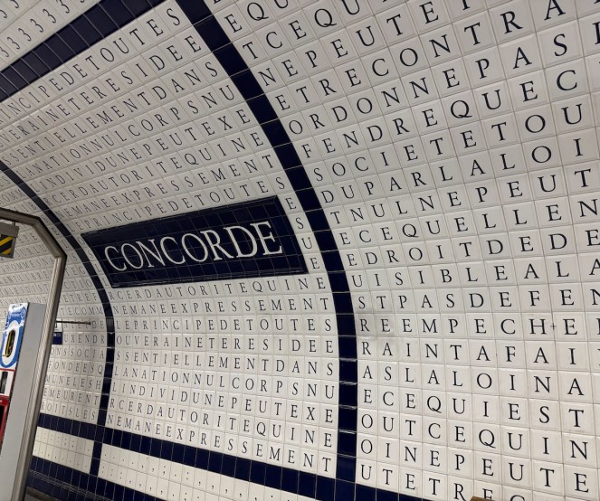 Concorde Metro Station wall. (Notice the punctuation at the bottom.)