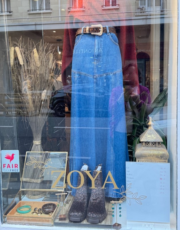 Part of being in a new place for a few days is noticing. Like this terrific jeans skirt.