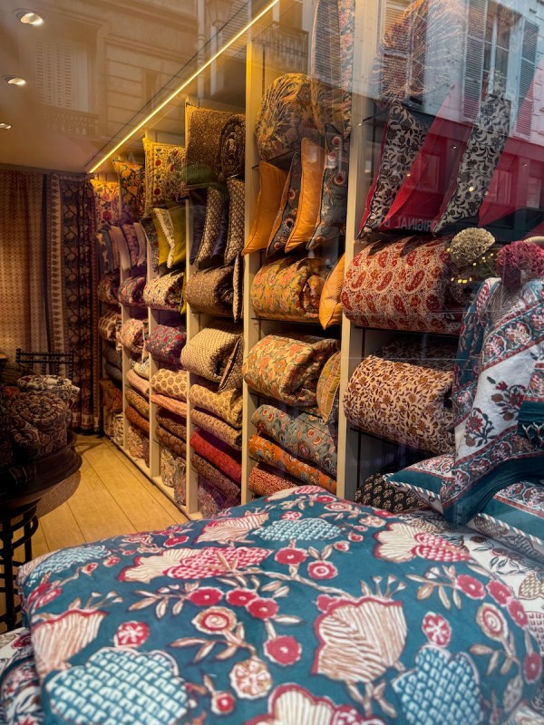 In another section of St. Germain (5th Arrondissement), we window-shopped at Pierre Frey. We were on our way to buy my other favorite souvenir, table linens.