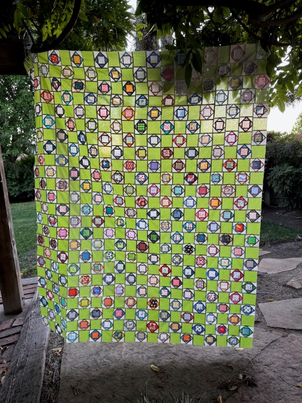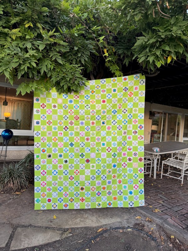 I delivered that one to the quilter this morning, too. I had started this #scrappythriftblockchallenge with Taryn of @reproquiltlover on Instagram. I wrote up a guide sheet and shared it (you can find it all on this post); the quilt begins with this blog post. [Note to all the Historians out there: first Instagram post was on March 31]