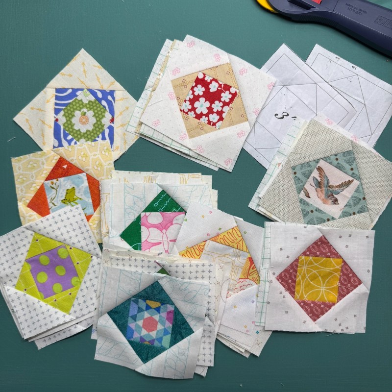 So I chose HelpMeMakeSomething projects, like these economy squares, and a Block of the Month, and a reworking of an old favorite pattern, plus squircles (which are still ongoing).