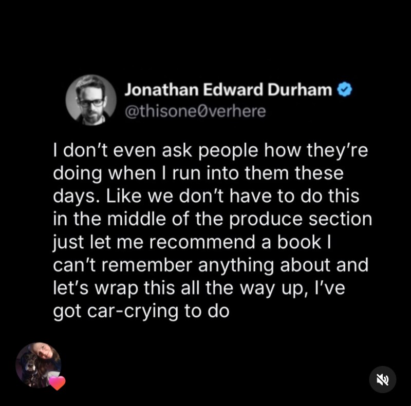 Thank you, Trader Joe’s. Thank you to everyone who takes the time to read this, and/or write something, or maybe just carry a thought or two around in your head. I’m grateful for you all and for what you share; what rich and varied lives we all lead.