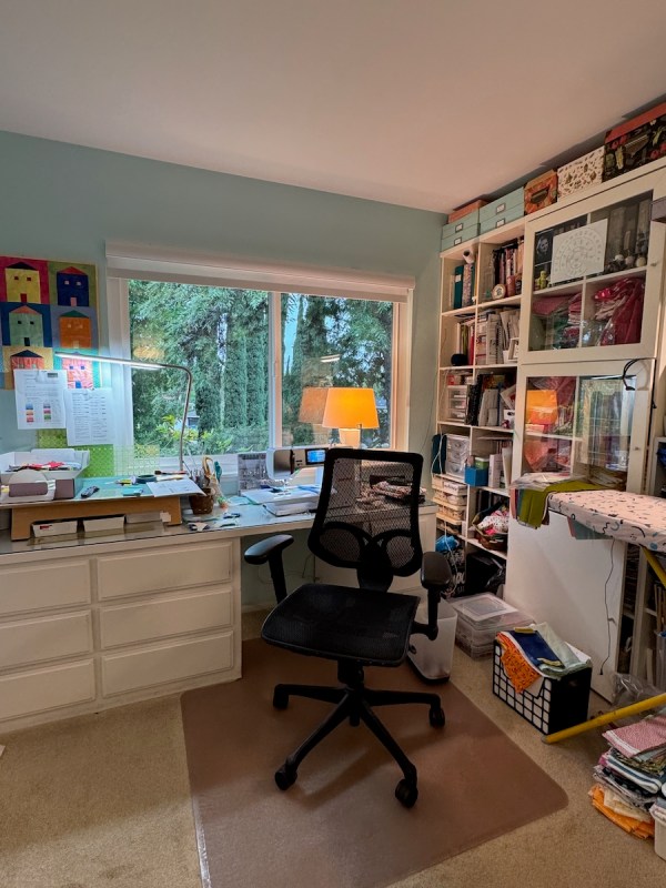 The day after Christmas, another morning walk, then I’m back in the sewing room. I’d cleaned it up, cleared it up before leaving, but now it was time to mess it up again with scraps of fabric, bits of pattern directions pinned to a quilt over my cutting table. Time to thread the machine, plug the iron back in and fire it up.
