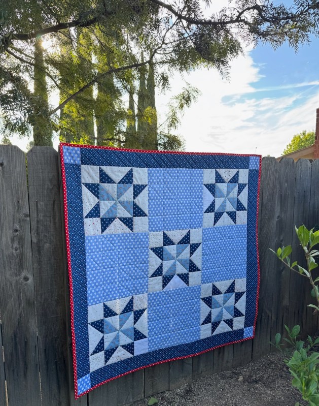 Stars for Baby (quilt #314) went to my friends Camryn and Landon, who are expecting their first child in a couple of months. Camryn and I had planned to get together so I could teach her quilting, but then he got a new job, and it RAINED A TON on the day she was supposed to come, and then Christmas and New Year’s, so we’ll get together after her wee boy comes and we’ll work on the teaching part then.