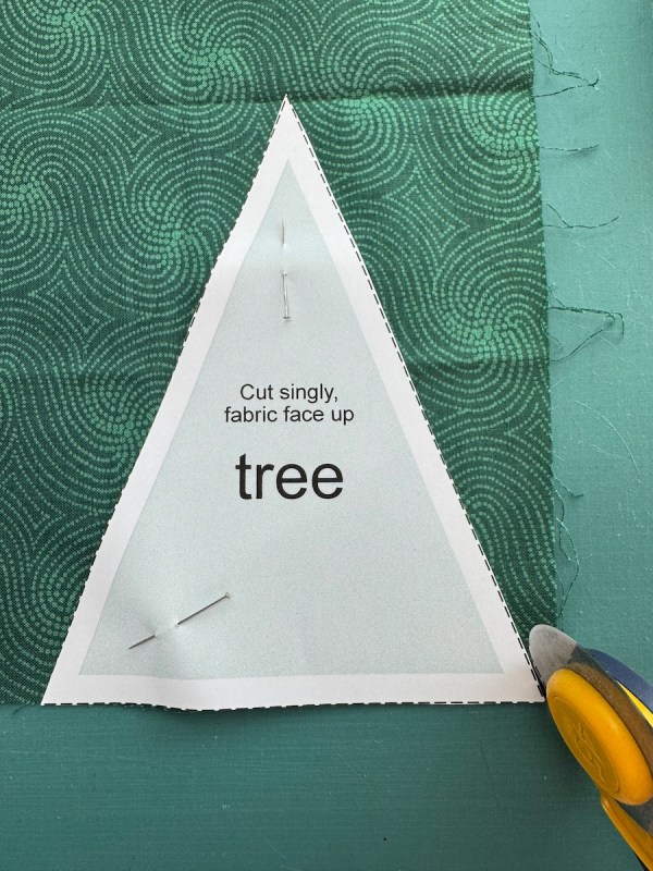 I pinned it up on my design wall, and kept it there while I worked on the houses. These are slightly bigger than what’s in my pattern (but the instructions are all in there, plus a version of Far Away Doors). But this version needed a tree, or four. So in the free tip sheet above, are instructions for some of the trees in this border, too.