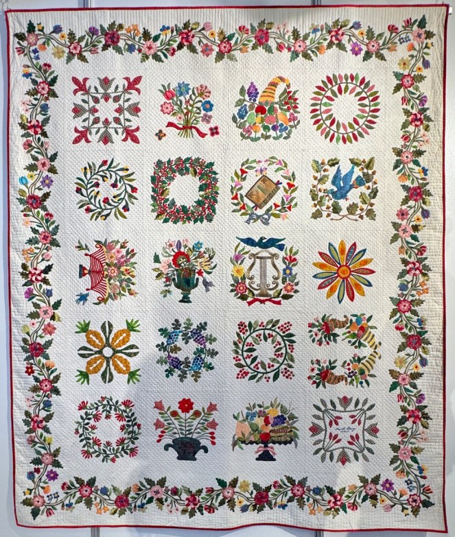 And now I know the maker of that antique quilt: Ann Marker, from nearly 200 years ago. This truly is free and fabulous appliqué — the joy in these shapes just radiate from the quilt.