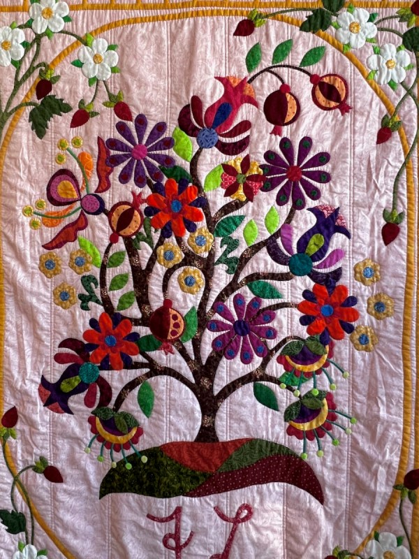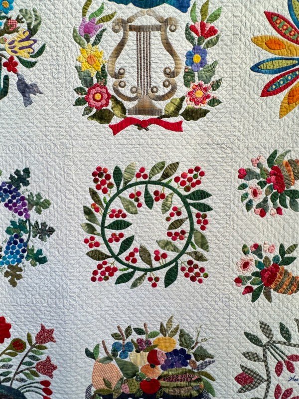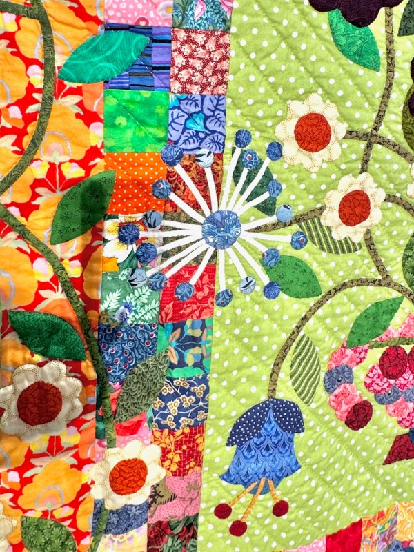 Those teensy seeds on the blossom, and the wonderful shape and proportions of this quilt: loved it!