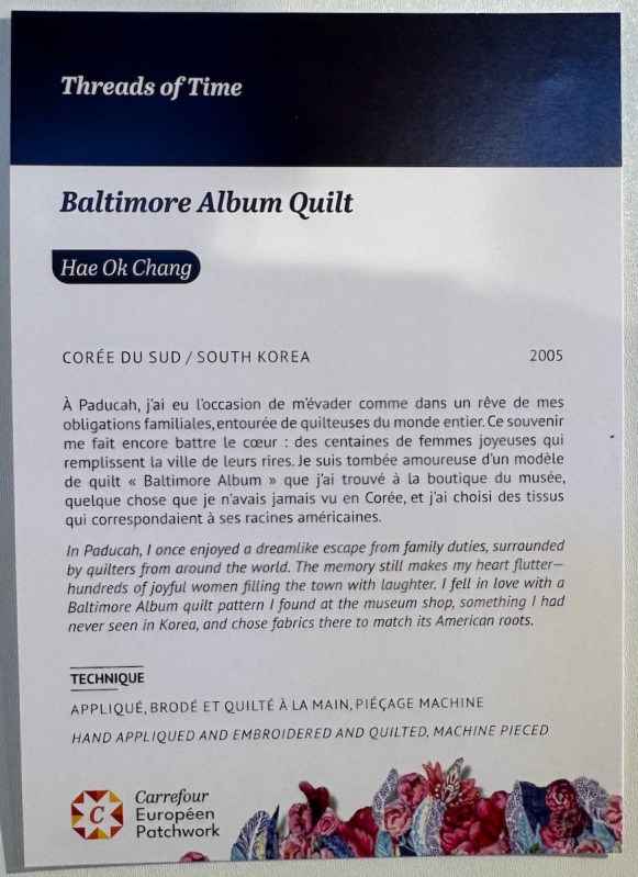I have a main Carrefour Quilt Show page that lists all the posts of all the meetings I’ve gone to, and includes the posts from this year too. If I haven’t mentioned it before, you might enjoy these posts more if seen on a desktop computer or even a tablet. Cell phones re-format the layout and can sometimes do strange things to how it looks on the screen.