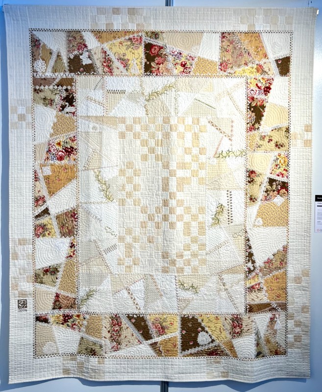 She “has been making quilts for more than 40 years….and after her exhibition here, she hopes that her quilt making will return to hobby level and that there may again be time for housework and gardening” (from catalogue).