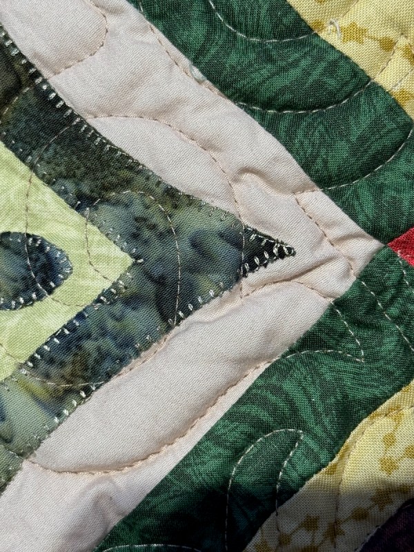 Technique: Machine pieced, hand appliquéd, embroidered and quilted.