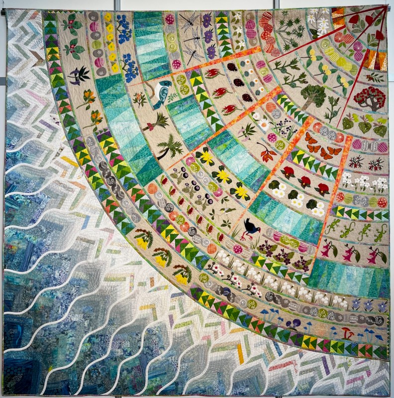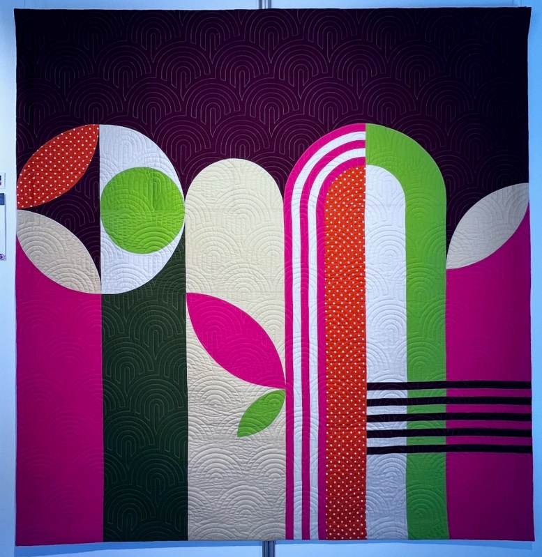 This is where I left Round Three of the Stay at Home Round Robin (SAHRR 2026), our last round. The new prompt for Round Four was “curves.” I’d been writing up my posts from the quilt show I attended in France last year, the Carrefour European Patchwork Show, and kept seeing some curvy eye candy from 2025 and 2024: