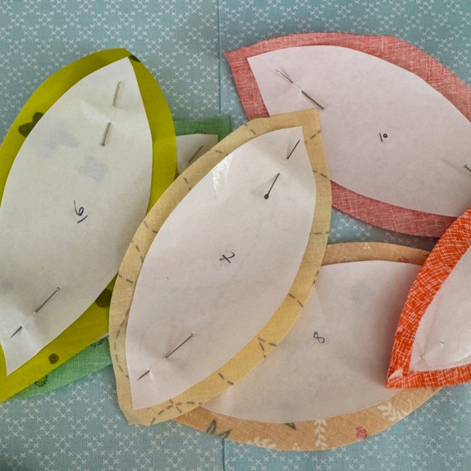 I am a fan of cutting my leaf/petal shapes out of freezer paper, putting the shiny side up, then ironing the seam allowance up over the edge.