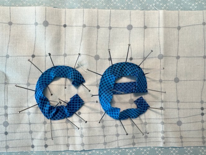Let’s just say I have a lot of work ahead of me as I have a lot of curvy letters. Do I use the monofilament-machine-zig-zag method of appliqué? Do I hand appliqué these? Do I switch to a narrower bias strip? Do I forget it all and just make some nine-patch blocks?