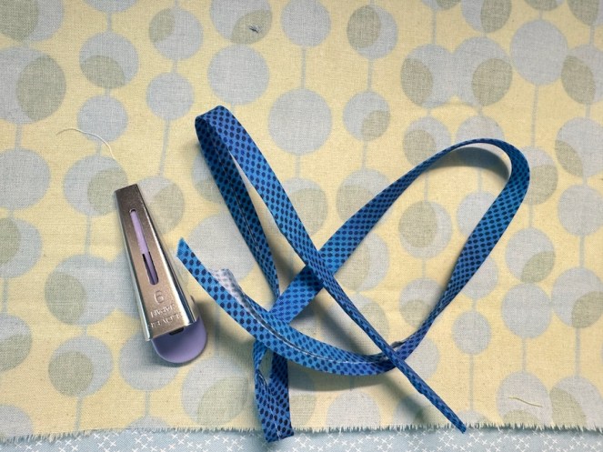 I checked all my notes, and cut the bias. I’m using the Dritz Bias Tape Makers, but first I do a test: