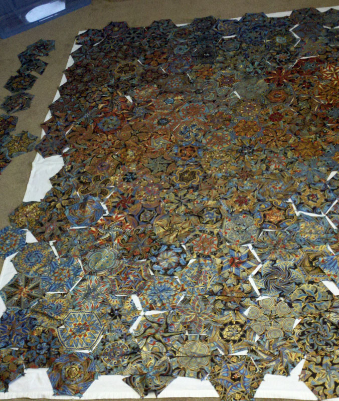 And that now is the world in which we quilt bloggers find ourselves, I think, which means that the pure excitement of sharing our quilts, our ideas and just chatting up the room seems to be slowly sinking into the swamp of Making Connections, Pitching My Stuff, Pick Me! Pick Me!, and so on. I think I participate in all of everything, as do most of us. But I was quite struck by the thoughts on Carrie Nelson’s blog, LaVieEnRosie, about how so much of blogging has become about advertising. Carrie is one of my heroes in the way she blogs truthfully about her life, so I really perked up when she next said: