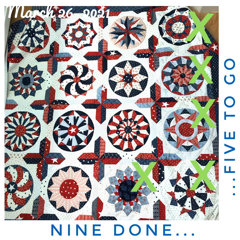 I’ve seen some pushing outward, some new quilting ideas, like we are all taking baby steps towards a new language of our own making. But we aren’t there, at least not yet. But it is this sort of challenge: beginning with hundreds of blocks, a full range of values and colors, and multiples of shapes, all being input into our brains as we try to become our own AI machines, combining and recombining. We are forever hoping from this process that a new quilt idea will burble up from the primordial ooze* of our sewing studios/rooms/spaces, and emerge into a full-blown fabulous new quilt. Aren’t we?