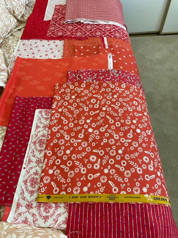I made my July block (churn dash, lower left) and August (star), both in this month. I’m using all my collected Sherri & Chelsi fabrics, some from her first lines. Sherri has started putting her quilt together, but I’m not sure how I’ll want to do mine.