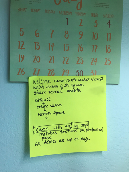 Our day together began at 9:00 a.m. In truth, my day began a bit earlier, when waking out of a dead sleep at 6:30 a.m. I realized I hadn’t written down my lesson plan. I bolted from bed and wrote it on a giant sticky note and slapped it up on the calendar next to my cutting table.