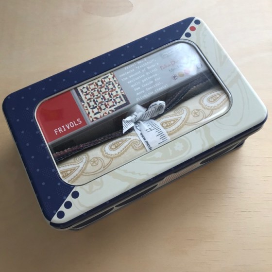 I finished up the quilt from Frivol Tin #4, and named it Life’s Dilemma. It’s quilt #201, which means I started a new listing of quilts, above “300 Quilts.” When I get that list filled up, I guess that means I retire? Go to the Caribbean or something, and lay on the beach? (But can I sneak my sewing machine into the hut on that elusive beach?)