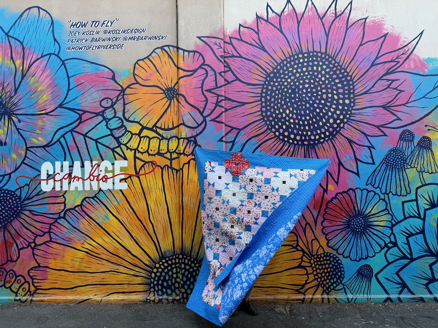 However, I’m more interested in the brain shift needed to think Big. I remember taking a class with Jane Sassaman once at a guild retreat, and she was encouraging and lovely. I have always done better with small-scale projects, but in Sassaman’s class I got busy creating the wildest thing I could, as I greatly admired her quilts. She strolled around the class and came to help, when I raised my hand, stuck as I was on the design in front of me.